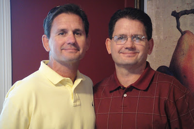 My grandmother and grandfather have three amazing children-- my mom and her identical twin brothers Rusty and Randy. Just to clarify, my mom is younger than these two and NEVER got in trouble for doing anything because of the things that my uncles got involved in when they were younger! Rusty & Randy turned the big "5-0" this week and so we celebrated this past Sunday with a cookout!